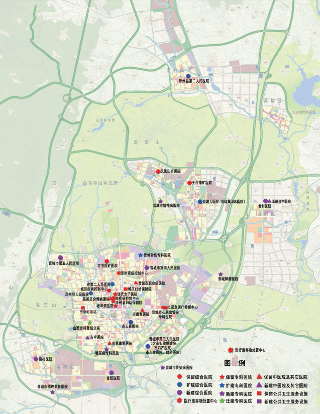 市域?qū)用嬷卦诳偭款A(yù)測(cè)和醫(yī)療服務(wù)體系建立,中心城市層面重在各類設(shè)施的均衡布局、空間保障、服務(wù)設(shè)施延伸。規(guī)劃確定了到 2020 年千人擁有 15 床位的發(fā)展目標(biāo),確定了優(yōu)先發(fā)展和保障社區(qū)基本醫(yī)療服務(wù),大力提升綜合醫(yī)院和??漆t(yī)院的醫(yī)療水平和服務(wù)能力的發(fā)展路徑,建立起以社區(qū)衛(wèi)生服務(wù)為基礎(chǔ)的新型城市醫(yī)療衛(wèi)生服務(wù)體系。