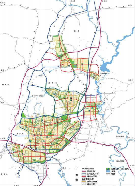 規(guī)劃引入城市火災(zāi)風(fēng)險分區(qū)的概念,將城市分成三個大類地區(qū):城市重點消防地區(qū)、城市一般消防地區(qū)和消防隔離帶及避難疏散場地,對城市各類功能區(qū)提出了具體布局要求,對各類消防設(shè)施進行了合理布局,應(yīng)用 GIS 軟件,建立晉城市消防設(shè)施數(shù)據(jù)庫,形成基于 GIS 的消防站布局優(yōu)化模型,結(jié)合城市規(guī)劃區(qū)重點防火單位、建筑物的安全等級、城市用地性質(zhì)、人口密度、建筑高度、消防抗災(zāi)指標等,進行火災(zāi)風(fēng)險分區(qū),按照時間約束條件(5 分鐘到達火災(zāi)現(xiàn)場),對消防站布局進行網(wǎng)絡(luò)分析調(diào)整,進一步優(yōu)化消防站布局。