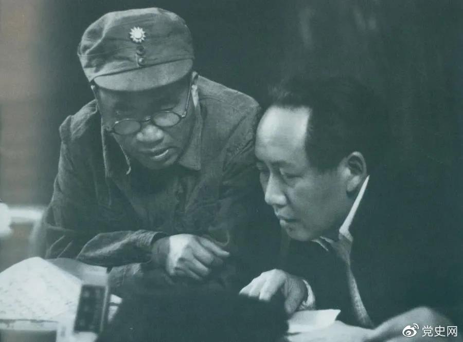 1945年4月,毛澤東和朱德在中國共產(chǎn)黨第七次全國代表大會上。